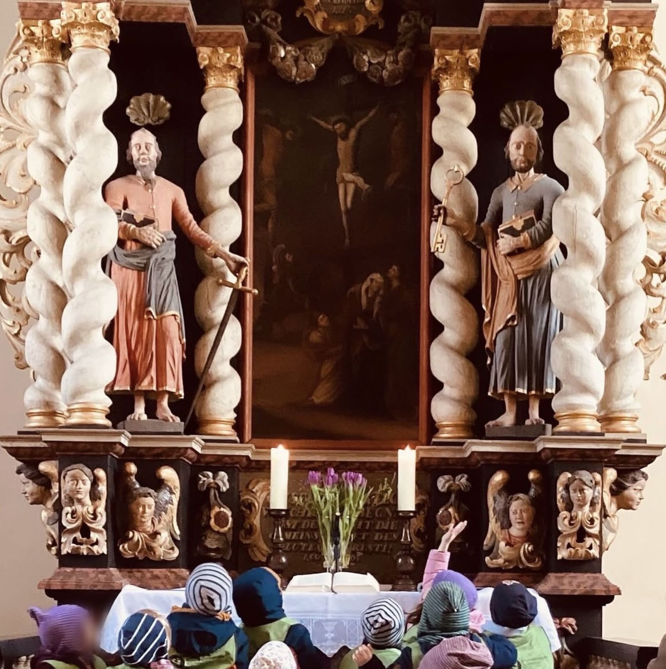 Religionspädagogik In unserer Arbeit hat der evangelische Glauben einen wichtigen Stellenwert. Wir sehen jeden Menschen als einmaliges Geschöpf Gottes und setzen Religionspädagogik in kindgerechter Form um.